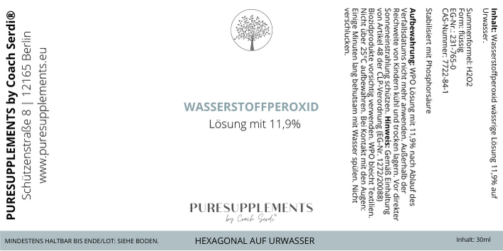 Premium Wasserstoffperoxid H2O2 11,9% hoch energetisiert auf Hexagonalem Urwasser (Warze, wpo, 20ml, Sauerstoff Aktiv, 0% Zusätze)