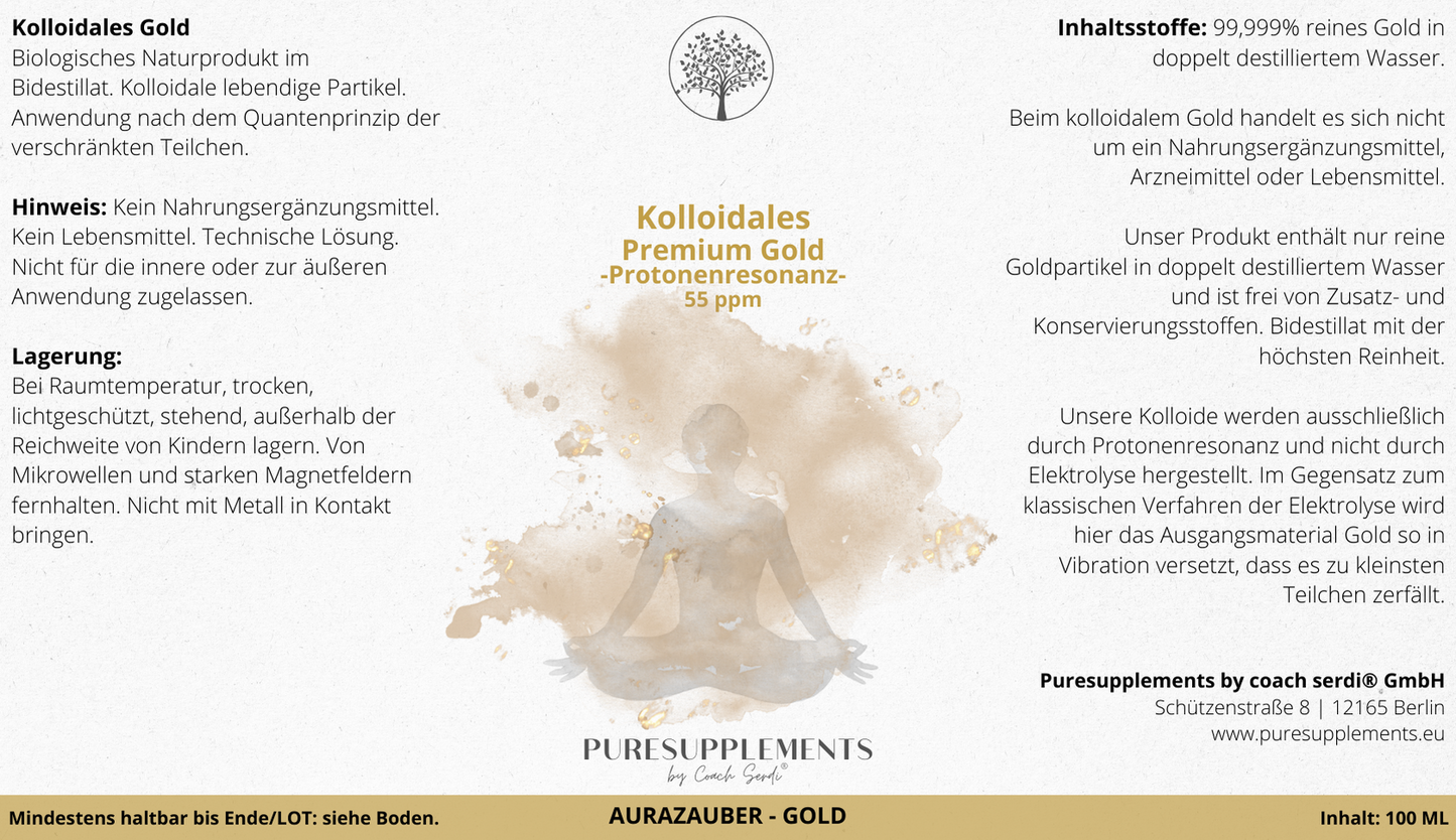 Unser Produkt enthält ausschließlich reine Goldpartikel in doppelt destilliertem Wasser und ist frei von Zusatz- und Konservierungsstoffen. Wir verwenden Bidestillat mit höchster Reinheit und Mironglas, um den bestmöglichen Schutz zu gewährleisten.