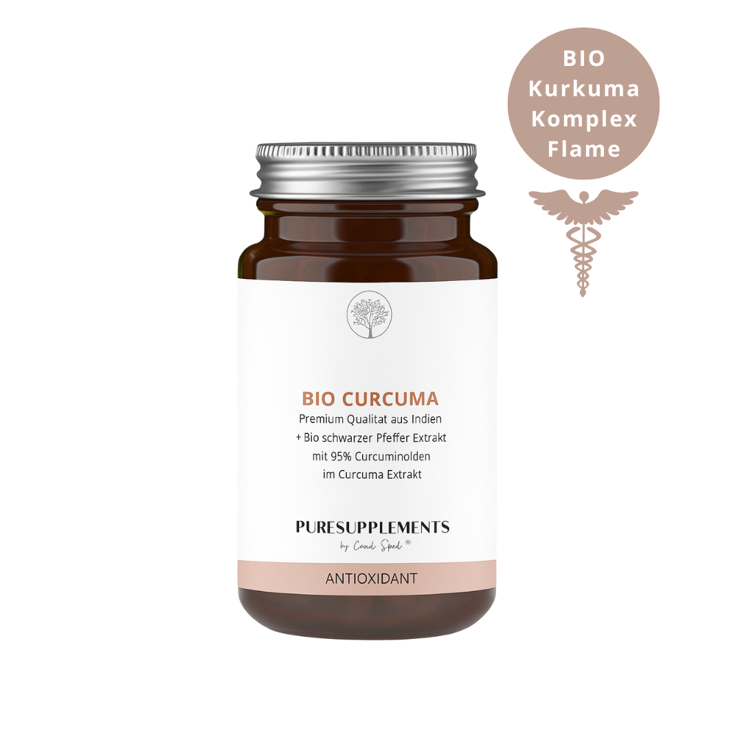 Premium Bio Curcumin Komplex Flame (Bio Vollspektrum Komplex: Bio Curcuma Extrakt und Bio Kurkuma Pulver mit Bio schwarzer Pfeffer Extrakt, 95% hoher Anteil an Curcuminoide, 90 Kapseln)