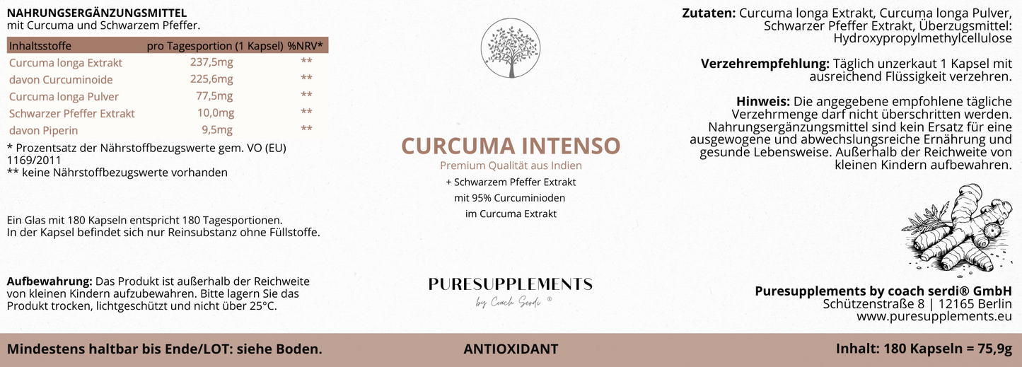 • Komplex Intenso: Curcuma Extrakt, Bio Curcuma Pulver und Schwarzer Pfeffer