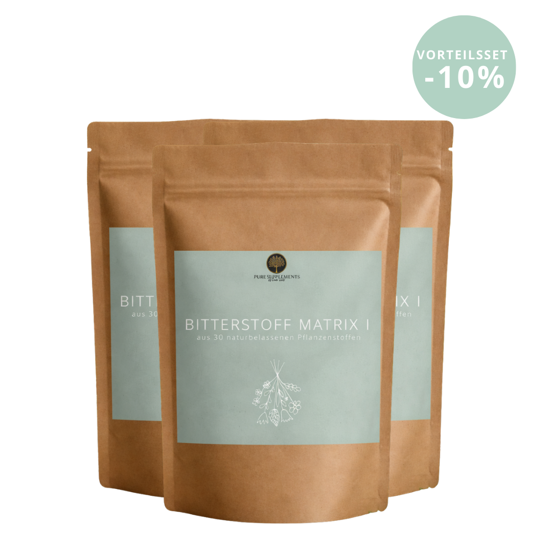 Unser Bitterstoff Matrix I vereint 30 ausgewählte bitterstoffhaltige Pflanzenextrakte und Pflanzenpulver in einer sorgfältig abgestimmten Rezeptur. Die Pflanzen werden schonend verarbeitet. Schonende Herstellung. Auf Hilfsstoffe oder künstliche Zusatzstoffe wird bewusst verzichtet. Jede Kapsel enthält 450 mg bitterstoffhaltige Pflanzenextrakte. Die Rohstoffe werden sorgfältig ausgewählt und unter kontrollierten Bedingungen verarbeitet.
