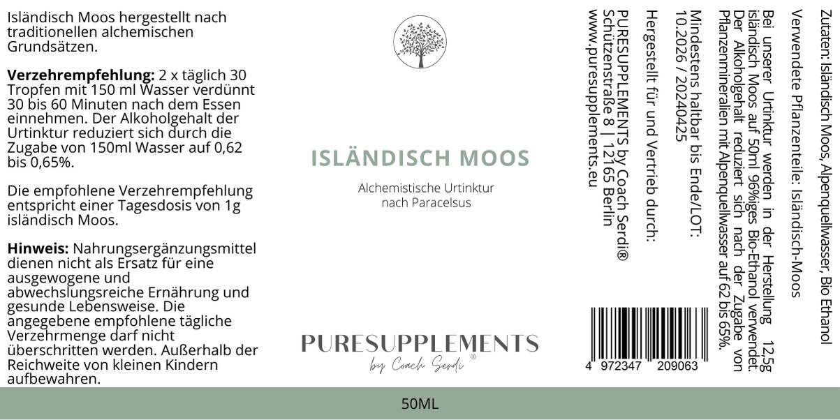 Premium Isländisch Moos – Alchemistische Urtinktur nach Paracelsus (50ML, Wildwuchs, hochkonzentriert)