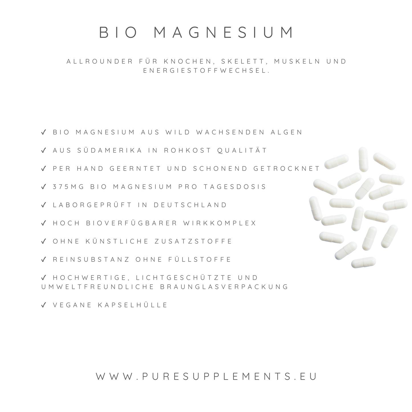 - Hoch bioverfügbar: Unser Bio-Magnesium aus Meerlattich liefert einen natürlichen Magnesiumkomplex, der aus verschiedenen organischen Magnesium-Verbindungen in perfekter Synergie mit den wertvollsten Pflanzenstoffen und Eiweißen besteht.
